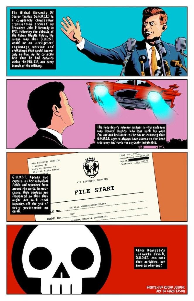 GHOST Agents is the wildly imaginative work of a faction of up and coming artists, including Wesley Griffith, Geoffrey Krawczyk, Chris Anderson, Raymar Brunson, Ben Perkins, Barry Tan, Chris Fason, Christian J. Meesey (Meesimo), Adam Lemnah, John Burkett, Dave Grom, Rick Lopez, Danny Nicholas, Dave Praetorius, Miguel Galindo, Jason Foster, Tony Fero, Sean Luke, Dave Grom, Todd Fox, Caspar Schumans, Miguel Galindo, Nathan Grixti, Colin Shaw, Jamie Jones, Harry Hickle, Caspar Schumans, Sam J. Royale, Jerome Cabanatan, Robert Norton, Eli Schwab, Renel Roque, Michael Fitzgerald Troy, Jamie H Lee, Dave Praetorius, Ben Perkins, Dave Howlett, Raymar Brunson, Danny Nicholas, Sean McMillan, Edmund Kearsley, Gilbert Leiker, Christopher Nolen, Anton William Blake,and Noufaux, along with Mark Maddox and the legendary Ken Landgraf, all from stories written by Rocko Jerome.